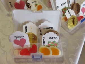 אז לנעמוני היה רעיון של גאון, הכנת משלוח מנות עם ברכות קטנות ואיחולים- בקופסא מחולקת של חרוזים (ממקס סטוק ב3 ש״ח) ובכל תא משהו אחר: איחול לאהבה, איחול לעושר, איחול לבריאות, איחול לשמחה(חיוכים)