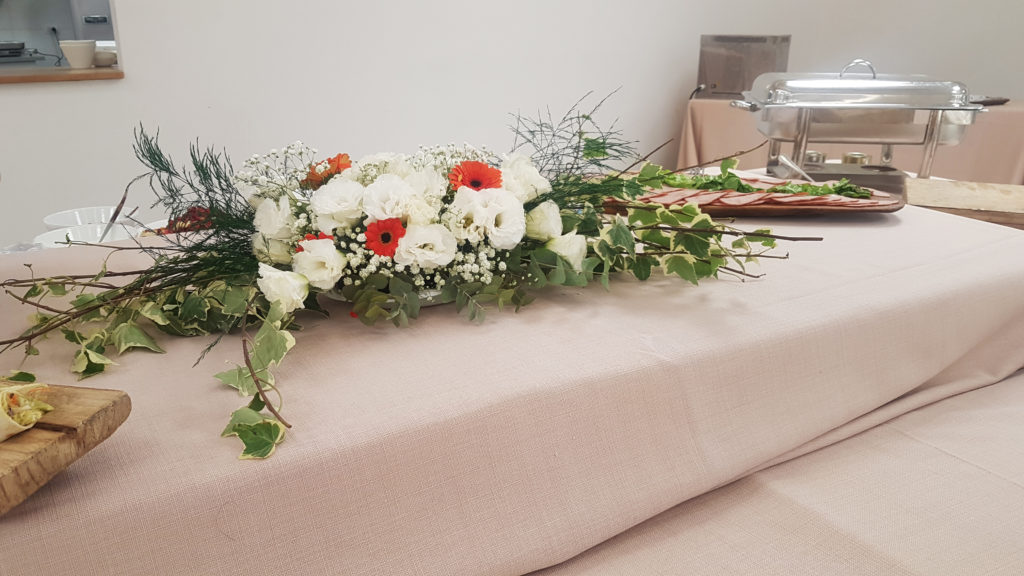 עיצוב בר מצווה בכתום לבן זה אפשרי ומענין בהחלט, פרחים לבנים עם נגיעות של כתום מפיות כתום תפוז , היה שמייח