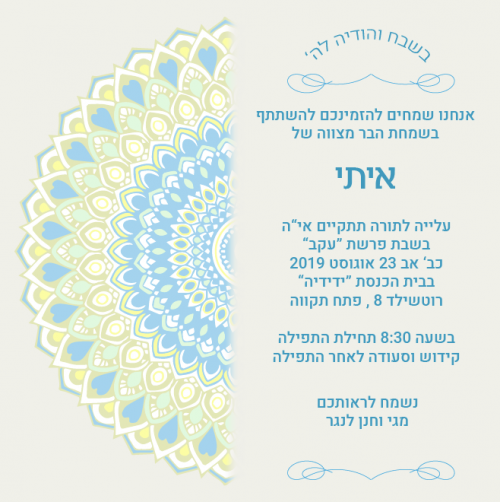 עיצוב גרפי הזמנה לבר/בת מצווה, קובץ המכיל 2 צדדים
